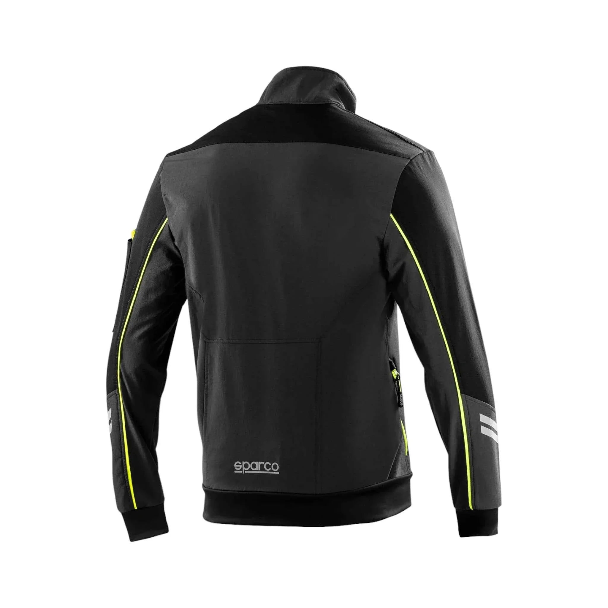 Sparco Tech Light Shell Jacket a windproof soft shell with a waterproof zip and anti abrasion shoulder inserts. Reflective details enhance visibility while elasticated waist and cuffs ensure a comfortable fit. Featuring two side pockets and a zip-closure chest pocket for ample storage.